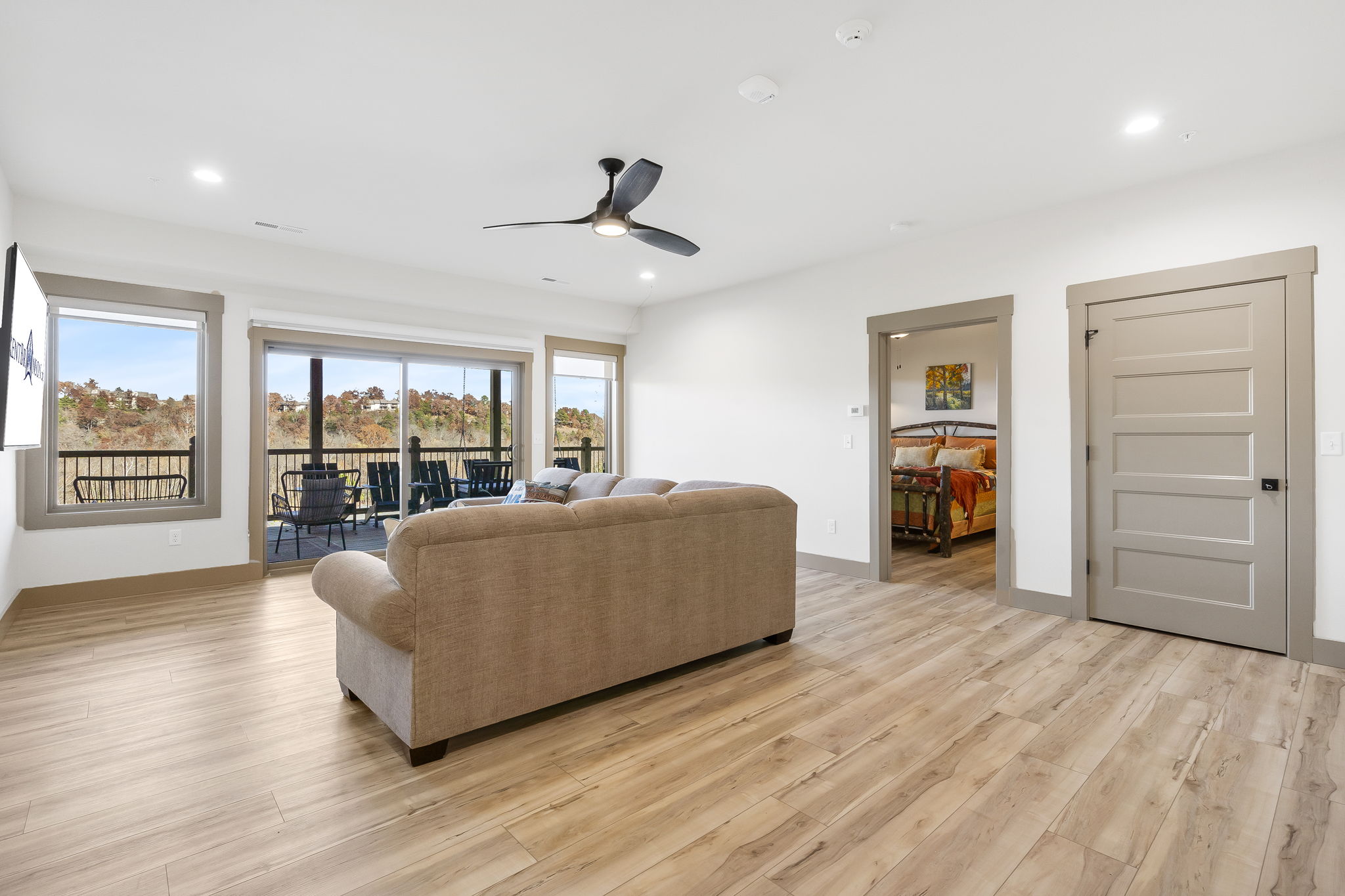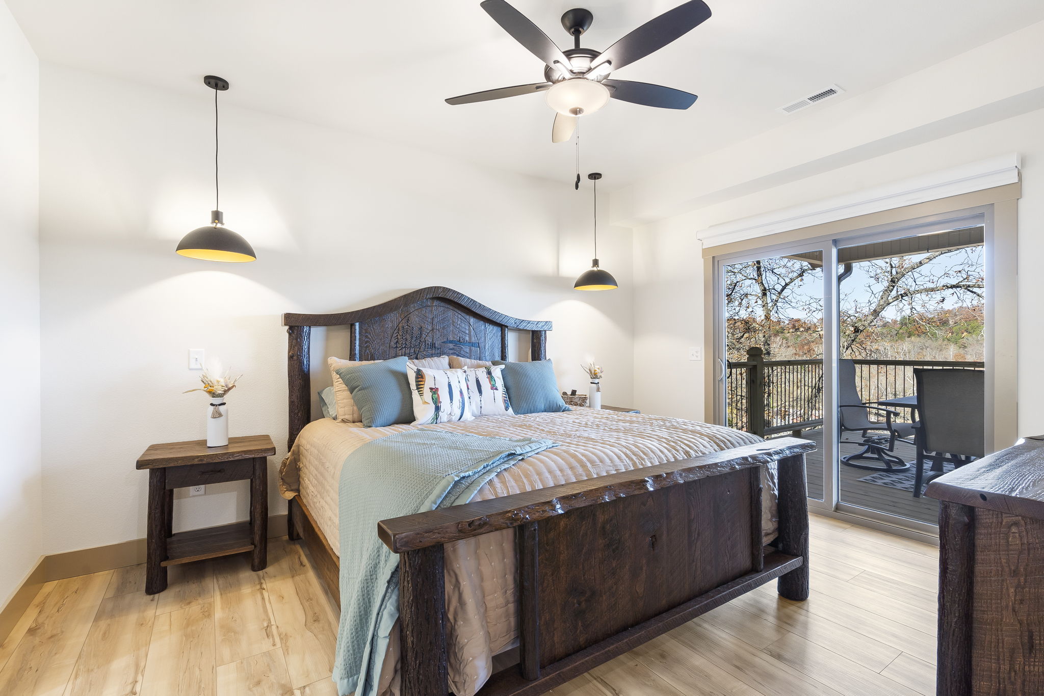 Step out onto the deck and take in the mesmerizing views of Lake Taneycomo. The fresh Ozarks breeze and serene surroundings make it the perfect place to lounge and relax. When it’s time to retire for the night, you’ll find two king bedrooms on this level, each with deck access and ensuite bathrooms, ensuring ultimate relaxation and comfort.